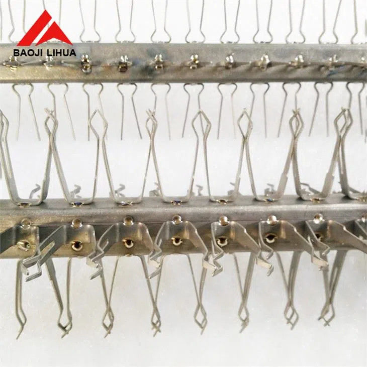 L'installazione di titanio nella produzione placcante pricipalmente è condotta, di sostegno ed ha riparato le parti, i pendenti ed i collegamenti dell'elettrodo, di modo che la corrente è trasmessa più uniformemente alle parti per placcare. In alcuni casi, la distribuzione uniforme del rivestimento può anche essere compensata da una sospensione perché le proprietà della soluzione la limitano.